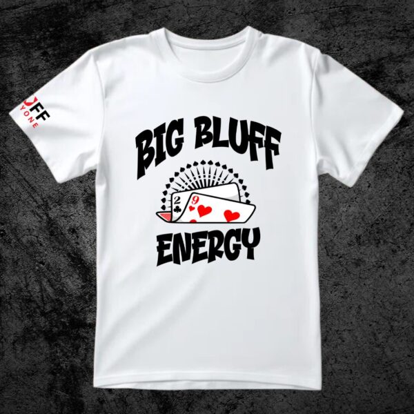 Channel the confidence of a high-stakes play with Bluff Everyone’s “Big Bluff Energy” shirt. Featuring a bold design inspired by the legendary “Chester Aces” hand, this tee is a nod to poker’s most daring moments. Crafted from premium, soft cotton, it’s perfect for game nights or casual outings. Whether you’re holding pocket rockets or pushing through a bluff, this shirt lets everyone know you play with heart and style.