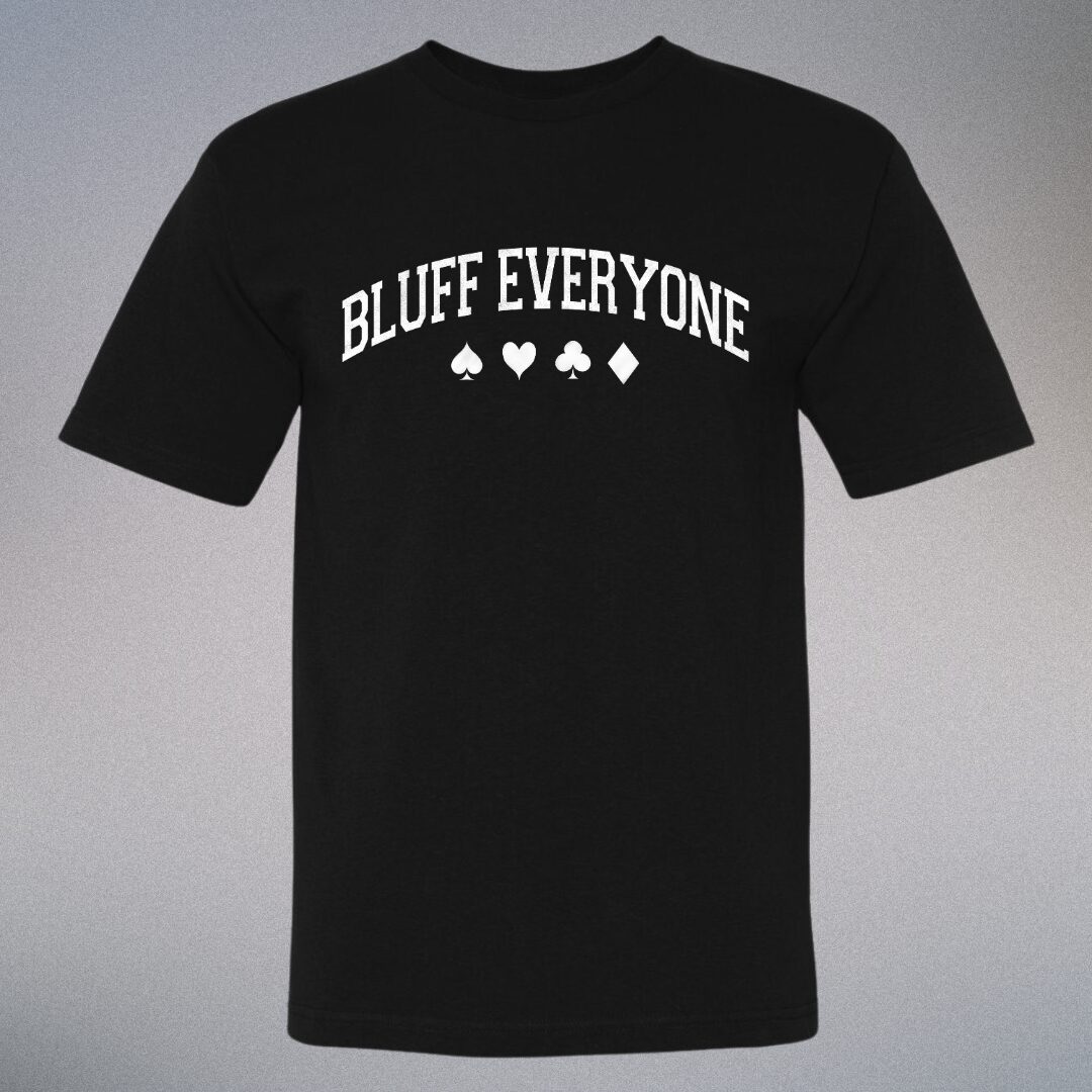 Simple. Bold. Unmistakable. The Bluff Everyone Suits tee features the classic Bluff Everyone design with all four suits lined in clean style. It’s the perfect blend of poker roots and everyday wear.